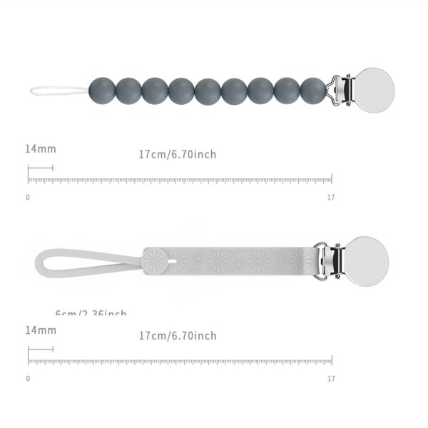 • Las cuentas de silicona del kit de cadena chupete bebe están hechas de silicona de grado alimenticio,. Está equipada con un clip chupetero de acero inoxidable y es duradera. El bebé puede usar esta chupetero con confianza .