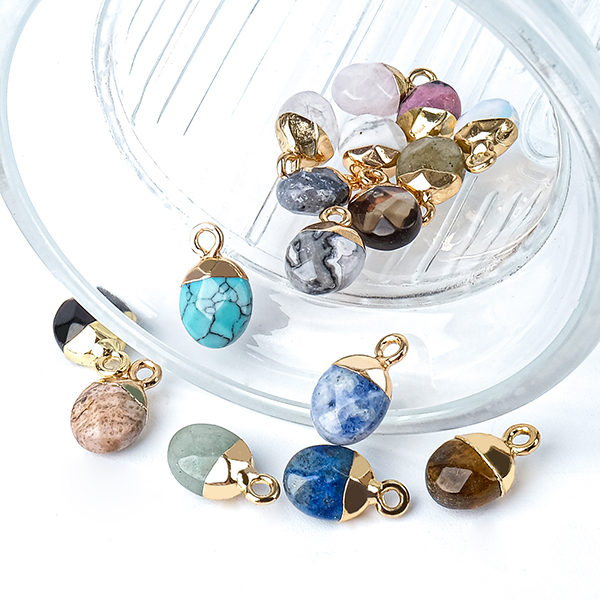 Pendente ovale in pietra sfaccettato con guarnizioni in ottone: perché ogni ciondolo di perline di pietra è realizzato con materiali naturali puri e ha un aspetto unico.
