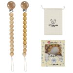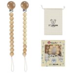 - Seguro y firme: combinación de cadena chupete silicona de calidad alimentaria + cadena de cadenitas para chupetes de madera, hecha de materiales naturales,sin BPA, sin PVC, sin plomo, sin metales.La chupetero silicona es firme y no es fácil de romper, por lo que no hay necesidad de preocuparse de que las perlas de silicona se caigan.Es absolutamente seguro para los niños. La longitud de la cadena del chupete cumple con las normas de seguridad europeas y no puede exceder los 22 cm.